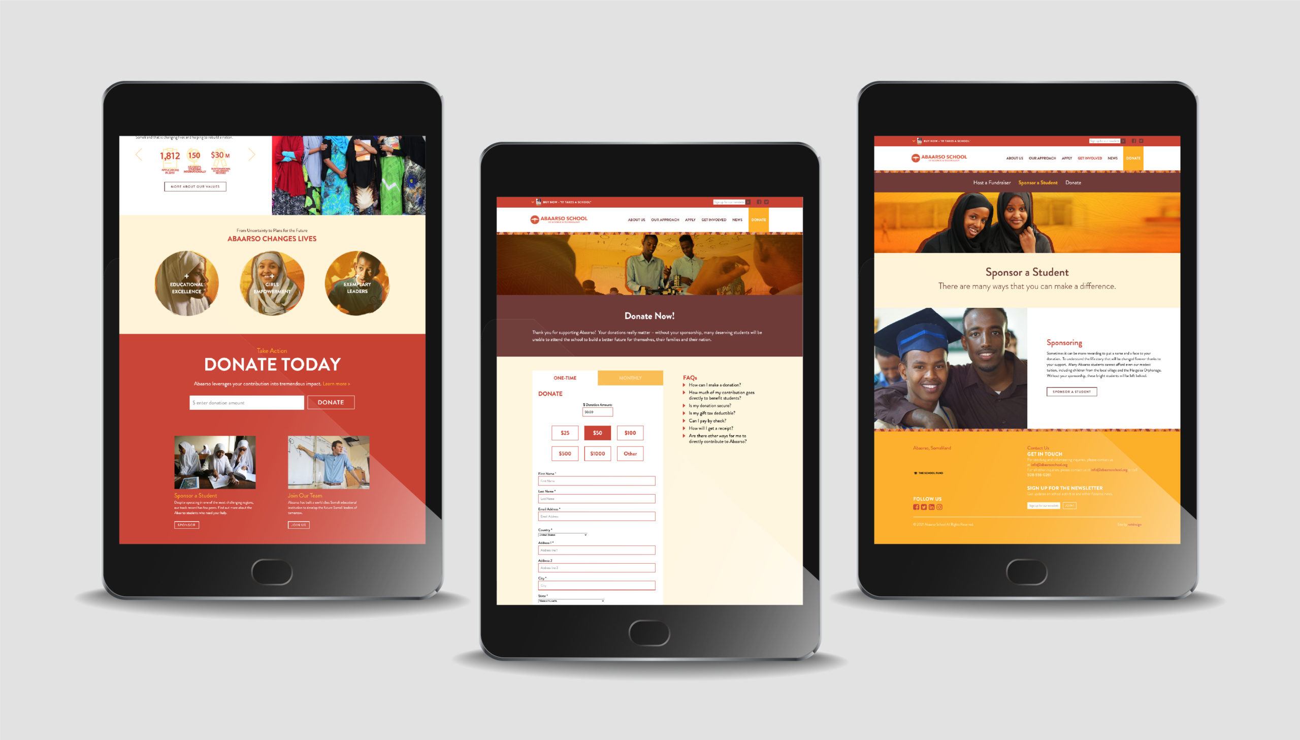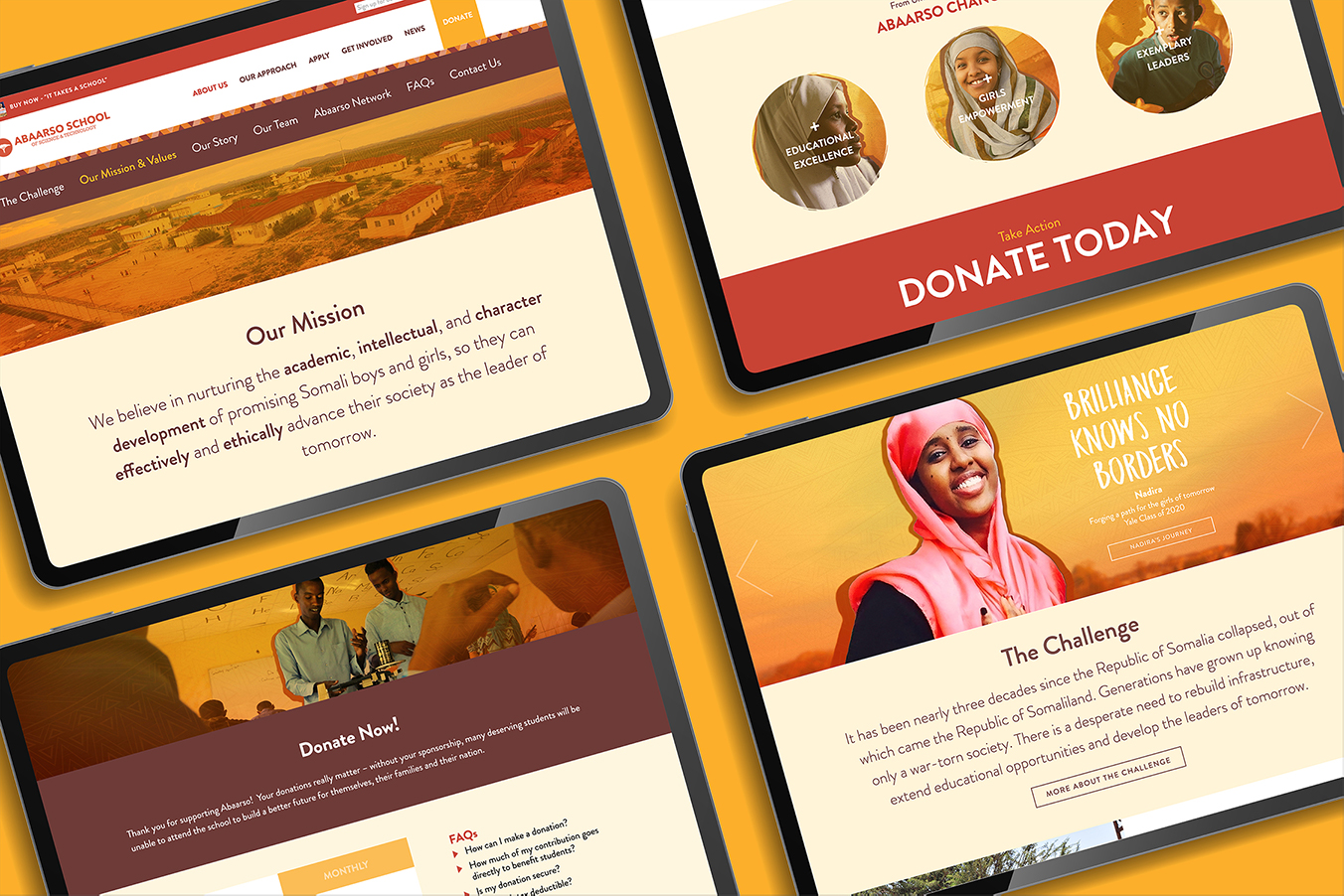 In 2013, the Abaarso School was launched against all odds in a remote location in Somaliland to prepare the future leaders of a state devastated by a brutal civil war. An American accredited 7th-12th grade leadership boarding school, at Abaarso young students became the first Somalilanders in thirty years to earn places at top U.S. universities, including Harvard, Yale, MIT, Brown, Columbia, Dartmouth, and Cornell. In total, more than 350 alumni have earned scholarships totaling $55 million. Abaarso School has been featured on CBS’s 60 Minutes and in publications such as The New York Times, The Wall Street Journal and Forbes. As Art Director at Reitdesign, I was tasked with redesigning the school’s existing site to better reflect its location, students and extraordinary mission.